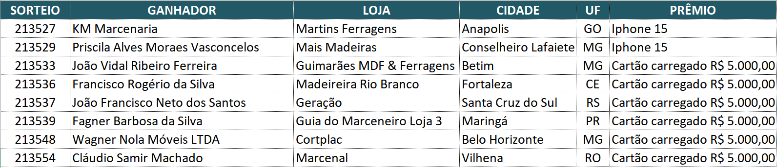 ganhadores